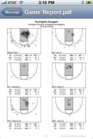 Statsquatch Basketball Scorekeeper is an easy and effective way to score live basketball games on your iPhone or iPod Touch. Designed by a former team statistician, Statsquatch Basketball Scorekeeper streamlines standard pencil and paper statistics gathering and scorebook entry into an intuitive touch-based interface focused on simplicity and efficiency. Statsquatch Basketball Scorekeeper produces stunning PDF reports that deliver fresh insights into your favorite team or player's performance.